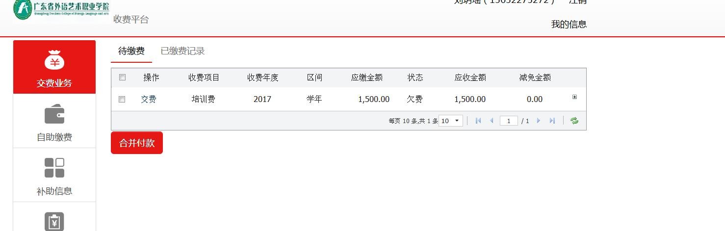 6.缴费成功后,返回到收费平台,可实时查询缴费记录。