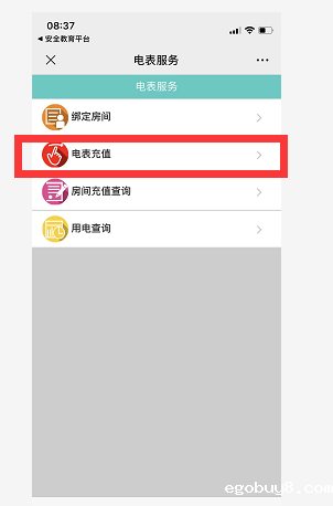 1.关注竞技宝手机app智慧后勤微信公众号(gwyzhhq),选择进入服务大厅,点击水电充值后选择五山燕岭水电充值进入电表服务界面(必须关注后才会发送电费预警)。