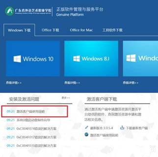 2、软件的激活操作方法请参照“软件正版化”网站首页的“激活客户端使用说明”(如下图)进行操作,或直接访问网址:http://ms.gtcfla.net/help/client。