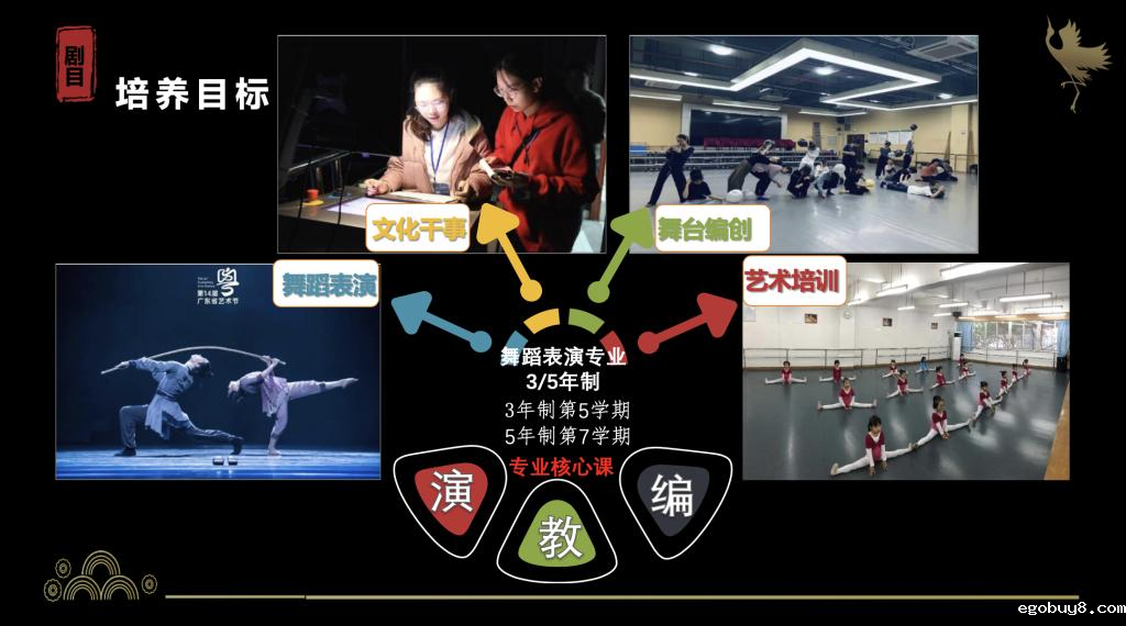 【专业核心课程】舞蹈剧目、舞蹈基本功、中国民族民间舞、现代舞、编舞技法基础。