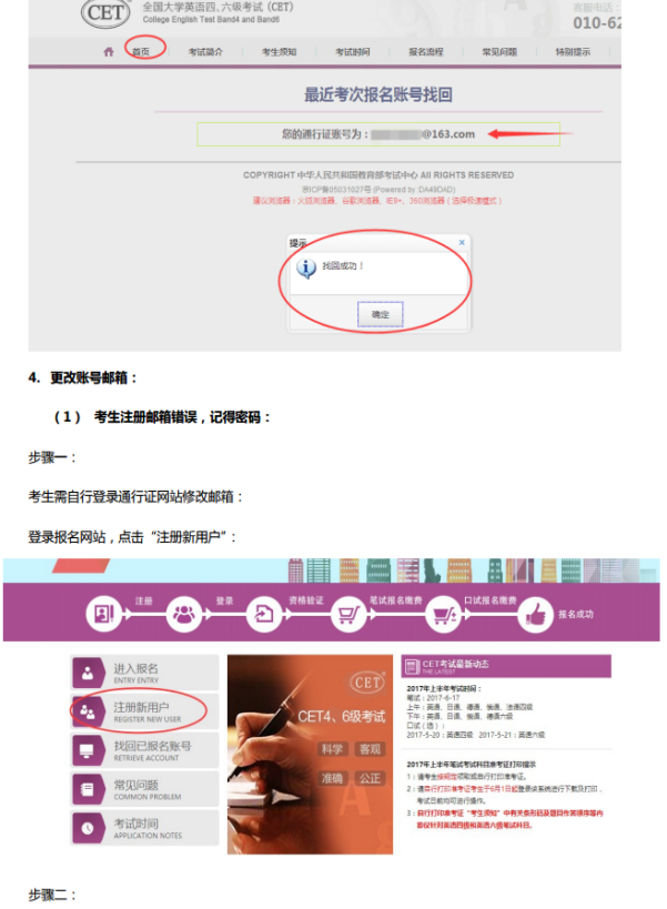 首次报名的考生请登录报名网: http://cet-bm.neea.edu.cn 注册,具体操作见附件2 |